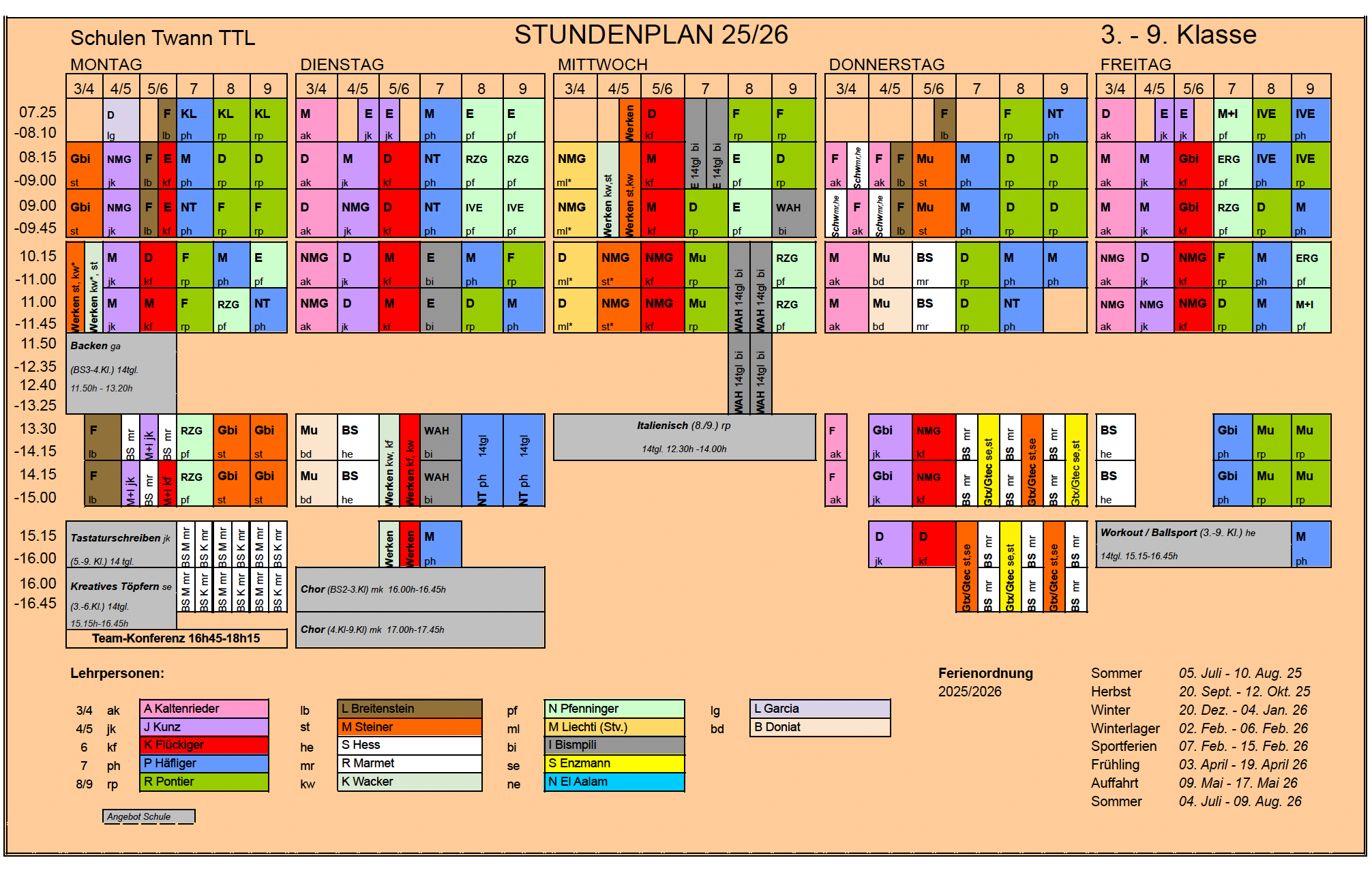 Schuljahr 25/26: Stundenplan Zyklus 2 und 3 sowie Basisstufen